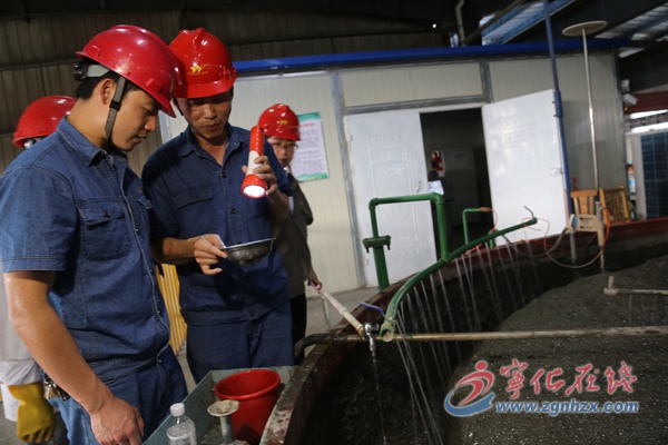 脫硫、配藥、選鎢、操作離心機(jī)、掃三水處理、烘干……細(xì)泥車間工序雖多,鄧春福一點(diǎn)都不含糊。就鎢礦細(xì)泥礦物浮選來說,配制藥劑最為關(guān)鍵,直接關(guān)系到生產(chǎn)成本和產(chǎn)品質(zhì)量。鄧春福走上三樓。當(dāng)天正是細(xì)泥車間浮選柱技改調(diào)試階段,實(shí)行新的藥劑配方后,浮選柱猶如巨大的磨盤,泛起無數(shù)泡沫。鄧春福站在轟隆隆的浮選柱前,不時(shí)將手伸進(jìn)濁流中,舀起一碗細(xì)泥。借助熒光燈的照射,他仔細(xì)觀察細(xì)泥中鎢精礦顆粒大小和密度,頻繁比對,現(xiàn)場征求專家意見,不時(shí)調(diào)整藥劑配方。