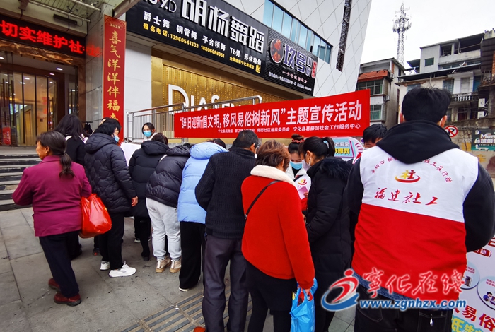 近日,寧化縣民政局聯合翠江鎮、南街社區居民委員會、寧化縣葛藤凹社會工作服務中心開展“辭舊迎新倡文明,移風易俗樹新風”主題宣傳活動。