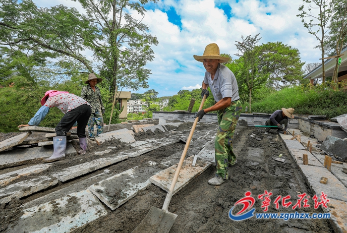 8月18日,記者在寧化縣淮土鎮鳳凰山中央紅軍長征出發地核心展示園看到,工人們正在搶抓晴好天氣進行施工,現場一派繁忙景象。