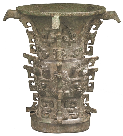 何尊。西周早期的青銅酒器,器型上圓下方,體現古人“天圓地方”的宇宙觀。腹底有銘文12行122字,其中的“宅茲中國”是“中國”一詞最早的文字記載。