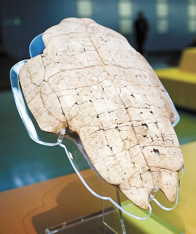 河南安陽殷墟博物館展出的刻辭甲骨。甲骨文是迄今為止中國發現的年代最早的成熟文字系統,具有重要文化價值。