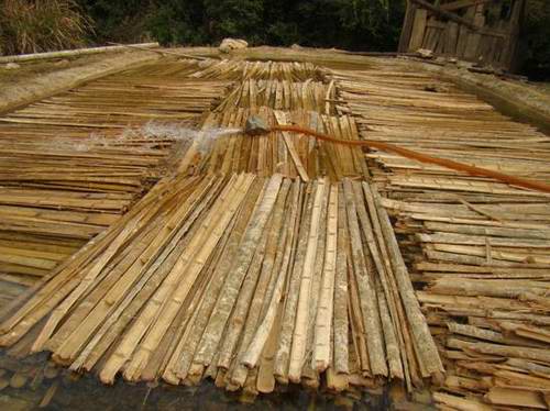 浸在塘湖里的造紙原料———竹麻