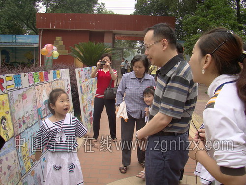 校園里正在辦畫展,陳忠杰和藹的問小朋友,這里面有沒有你寫的圖畫啊?小朋友用稚嫩的聲音說:“有,我畫的是各民族大團結”。陳忠杰稱贊道畫得真好!陳忠杰還在幼兒園駐足觀看了學生們的釣魚游園活動,每當看到孩子們成功的釣起玩具魚,都給孩子們報予熱烈的掌聲。