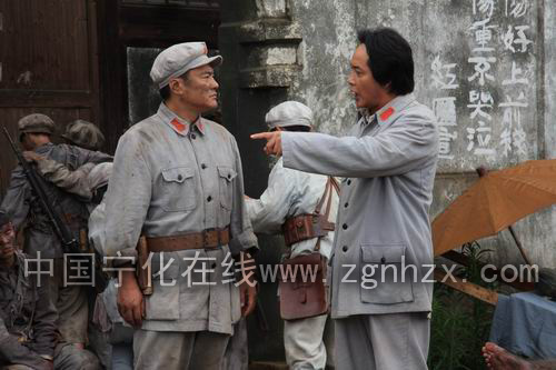 服裝師匆匆給他們分發(fā)了紅軍灰布軍裝、子彈帶,化妝師便一個(gè)個(gè)仔細(xì)給他們每個(gè)化起妝來,有的頭部掛彩、纏著繃帶,有的手臂中彈、整個(gè)胳膊吊在脖子上,有的全身血污、嘴角流血躺在擔(dān)架上……當(dāng)大家都化完裝,道具師給每位紅軍“傷員”,分發(fā)了一只“漢陽造”真槍,出演前的準(zhǔn)備工作就基本完成了。