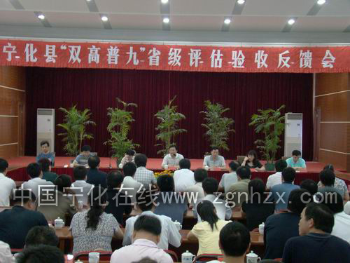 在反饋會上,省政府“雙高普九”評估驗收組各項目評估組分別就各自評估情況進行反饋,既肯定成績,也指出不足,并提出整改意見。省政府教育督導室副主任謝友平代表省評估驗收組作出總體評價:寧化“雙高普九”工作,領導重視,認識提高,氛圍濃厚,措施有力,整改到位,成績顯著。評估的32項指標中,達標的有26項,基本達標的6項,未發現“一票否決”項目不達標情況。同時,認為目前寧化教育工作,仍存在三個問題:一是縣財政投入與教育發展需要仍有差距;二是農村學校辦學條件仍然較弱;三是教師隊伍供需矛盾仍然突出。