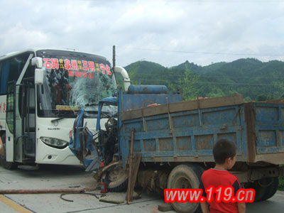 上午940分,縣消防大隊接到報警后,迅速派出一輛車裝載七名官兵前往。1010分,官兵到達現場,只見一輛寧化到石獅的大巴和裝石頭的拖拉機撞在一起,拖拉機上有一名駕駛員被卡在車里,車頭已經完全變形了。此時的駕駛員意識已經開始模糊了,根本就不知道說話。在這救人第一的緊要關頭,官兵在做好個人的防護后,迅速拿出工具進行破拆,同時與傷員不間斷進行談話,讓他不要睡著。經過十分鐘的緊急救援,被困駕駛員終于被成功救出,及時送到早已等待在旁的120救護車上,救援工作順利結束。(黃智聰)