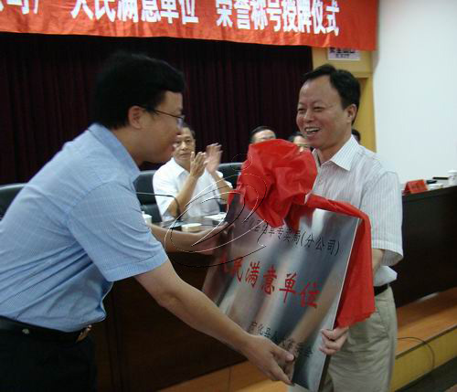 縣人大常委會主任林福生主持授牌儀式并講話。他說,寧化縣煙草專賣局(分公司)被評為“人民滿意單位”榮譽稱號是實至名歸,眾歸所望,希望縣煙草專賣局以獲得此殊榮作為新的起點,為寧化再立新功,再作貢獻。林福生要求,一要珍惜榮譽,更大作為。人民滿意單位是要靠創建,創建也要有基礎、有條件、有時機,要從三個方面來解讀“人民滿意”四個字,即要著眼于人民。縣煙草專賣局30年歲月如歌,能夠得到老百姓的肯定和認可,就需要煙草專賣局端正作風的指導思想、堅持以民為本的執政理念。要著力于創建,要創建就是要實實在在的作為,讓政策和制度的好處和成果得到充分的體現,讓功能與效率和社會共享,使人的全面發展和社會的全面進步結合起來。要著手于滿意。人民要滿意,社會要認同,做任何事都要考慮讓人得到滿意,認真履行自身職責,按照政策和制度的規范約束我們的行為,要從身邊事、從小事做起,時時處處都要想著人民群眾,“金杯銀杯不如老百姓的口碑,金獎銀獎不如人民褒獎”。二要滿意煙草,再續輝煌。煙草專賣局昨天是輝煌的,也希望明天更輝煌。煙草事業發展到了一種令人欽佩的程度,要以煙草人為自豪,煙草專賣局有企業文化等很多優勢,這種文化很有積淀、有創意。今后的目標要鎖定在做優現代現代煙葉產業上,在“優”字上做文章,在先行先試上做文章,把寧化煙草打造成為海西最大的煙葉生產基地、三明最優的煙草行業排頭兵、寧化最強的的現代煙葉產業。