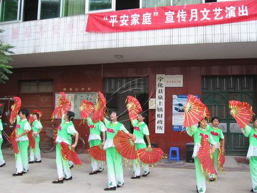 為進(jìn)一步推進(jìn)平安家庭創(chuàng)建活動(dòng)的深入開展,825日,縣平安家庭創(chuàng)建領(lǐng)導(dǎo)小組組織了縣退休婦女聯(lián)誼會(huì)的演員們深入到泉上鎮(zhèn),為當(dāng)?shù)厝罕娝腿ヒ粓鑫幕Ⅲ邸?SPAN lang=EN-US>