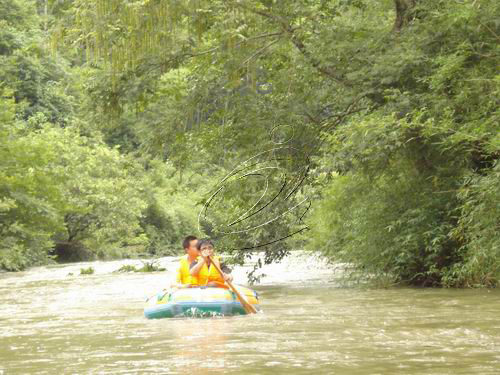 在梅溪河水面倒映著青峰綠影,使溪水更添碧綠。人與舟漂行其中,簡直被翠色包圍,不由心凈如洗,加之梅溪河上連一只小小的機動船都沒有,空氣異常清新,峽間格外幽靜,只是偶爾有幾聲鳥鳴,或有幾聲來自密林深處村莊中的犬吠,更使人有一種遠離塵世的感覺。