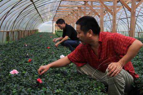 鄭文統(tǒng)觀察西洋杜鵑長勢