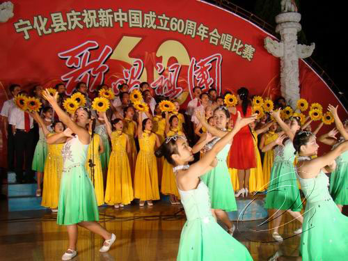 “祝福你,我的祖國,我把滿腔赤誠獻給你……”, 924日晚,一曲氣勢磅礴的大合唱《祝福祖國》,拉開了寧化縣慶祝建國六十周年“歌唱祖國”合唱比賽的帷幕。賽歌臺上鮮艷的五星紅旗背景分外耀眼,一首首歷久彌新的紅歌表達了35萬寧化老區人民心中對祖國的美好祝愿。