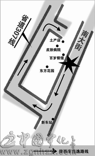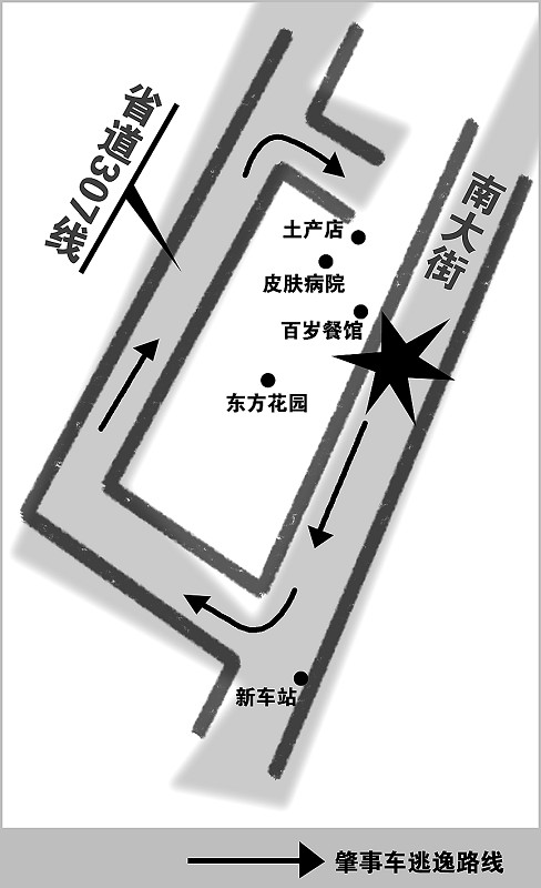 20時10分,我與妻漫步回來,見公安交警的二名人員在現場進行記錄、畫圖等工作。后來得知,交警大隊通過查電腦,于當晚11點找到車主,已扣了車。估計:肇事者撞了警車,怕警察圍堵,往南逃到新車站前,右拐到省道307線,再右行,至七中后小路,停到縣土產公司倉庫門口。