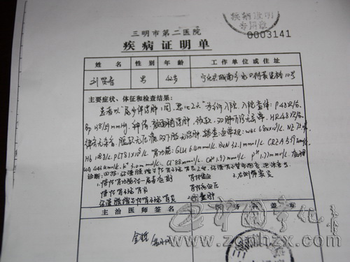 據了解,女孩的父親叫劉賢春,寧化縣城南鄉水口村人,今年42歲。小兒子就讀城東中學,為了供兩個孩子上學,他常年在工地上起早摸黑地干活。2009年10月,他發現自己脖子及下巴腫大,因為自己從小曾患腎病,起初他沒在意,認為隨便吃點藥就能對付過去。后來在親友的催促下,他到三明二院做了檢查。經過醫院會診,確診為尿毒癥。為了治病,家人從親戚家東拼西湊了5萬元醫藥費到醫院。可這些錢根本無法支付現在每天1000多元的開銷。日子本來就過得緊的劉家一下子雪上加霜。