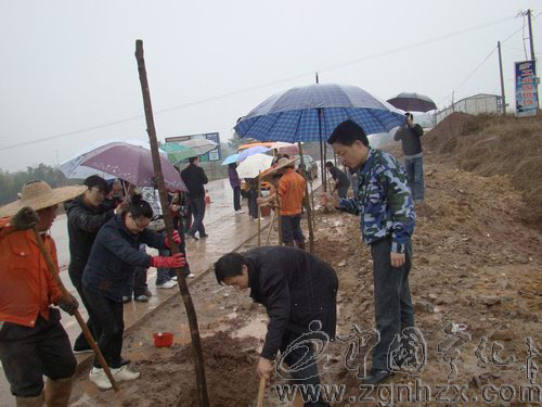 3月13日,盡管春雨連綿,可寧化縣石壁鎮陂下村道路兩旁卻是一派熱火朝天的景象。由“中國寧化在線”組織的30余名網友與寧化公路分局工人一起,運苗栽樹,揮鍬培土,種下一排排香樟樹,為寧化“綠色長廊公路”再添新綠。