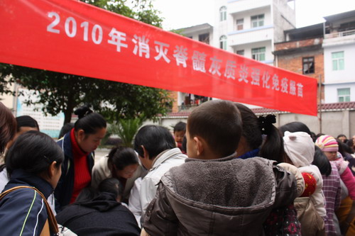 在縣疾病預防控制中心院內,人頭攢動,家長們帶著自己的寶寶,紛紛來到這里接受脊髓灰質炎強化免疫。經過簡單的核對和登記,每位嬰幼兒就可領到一粒叫做“小麻糖丸”的藥丸,在醫務人員的指導下,伴著開水吞服下去。