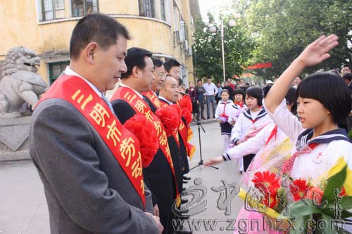 429上午,在“五一”寧化縣被推薦到三明市表彰的7名勞模佩戴大紅花、綬帶從縣政府出發趕赴三明,參加市政府舉行的20072009年“三明市勞動模范”表彰大會。出發前,縣領導廖金輝、陳瑞鏡為他們舉行歡送儀式,并與他們一一握手祝賀,披上綬帶,配帶紅花,7名可愛的少先隊員為市勞動模范獻上了鮮花。