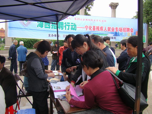 據介紹,寧化縣共有殘疾人2.4余萬人,約占全縣總人口的8%。受身體條件和文化、技能水平限制,適合他們的工種有限。為了解決殘疾人的就業問題,寧化縣殘聯采取多項措施,認真做好殘疾人求職登記,及時掌握企業用工信息。通過“請進來,送出去”的辦法,每年舉辦殘疾人招聘會,為殘疾人求職者廣開就業門路。