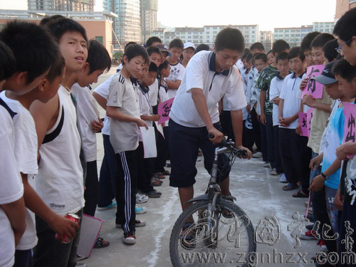 七年級(13)班李小龍,是“城中吉尼斯”活動的一個明顯受益者。他原來在江西文武學校就讀,學習基礎較差,進城東中學時成績處于下游,他感到很自卑。入學后不久,他報名參加了城中吉尼斯,憑著良好的武術功底,他一炮打紅,成為校園中的“武術之星”,他的名字上了光榮榜,他的紀錄上了“城中吉尼斯”。加上與著名影星李小龍同名,他一下子成了“名人”。之后,他自信多了、學習也更認真了,成績一下子進入了中上游。“因為現在大家都認識我了,還有很多‘粉絲’要跟我學武術,我不得不努力!”李小龍說。