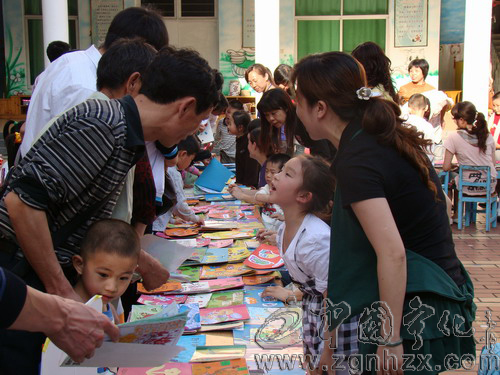 在義賣現場,擺滿圖書的臨時柜臺被家長、孩子圍得水泄不通。孩子們牽著家長的手挑選自己喜愛的圖書。不到40分鐘,滲透著大、中班幼兒勞動汗水的近400本圖書已所剩無幾。搶購到2本書的