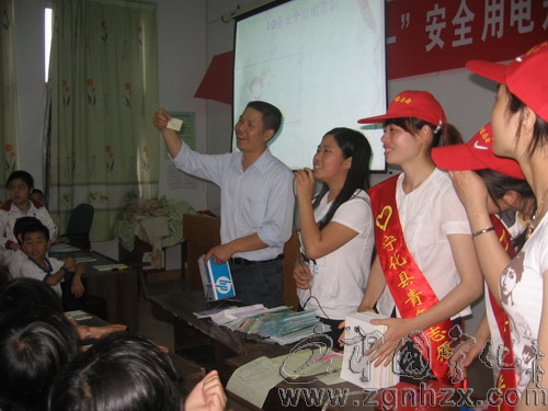 活動中,通過播放VCD光碟、講解安全漫畫、發放安全用電知識宣傳單等方式,課堂上還著重圍繞日常生活中的安全用電常識、家用電器安全使用方法、電力設施保護常識等內容,在講解過程中通過上下互動、穿插競答互動游戲進一步活躍氣氛,對安全用電常識進行有獎搶答。課堂中同學們踴躍回答、氣氛活躍。四年級學生張蓉倩高興的說:“供電公司的叔叔給我們上了一堂生動而非常有意義的安全知識課,讓我們掌握了很多日常安全用電小常識!”不少同學紛紛表示,今后不用濕布擦電器,不爬電桿或搖晃電桿拉線,不在電線附近放風箏了。