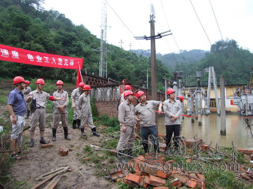 在沙坪變搶修現場,全體干部職工們就沖鋒在前,電力員工發揚特別能吃苦、特別能戰斗、特別能奉獻的精神,不畏艱險,齊心協力,充分發揮工人階級主力軍的作用。現場洪水正在沖刷著變電站,在搶修一開始,黃可平同志沒有一絲的猶豫,來不及挽起褲腿,就踏進了一米多深的洪水中,開展變電設備拆除接線工作。他說:“為了讓4個鄉鎮能早日恢復供電,再難我們也要上!”簡樸的語言表達了在場電力搶修工人的精神和心愿。由于設備較重道路無法搬運,電力工人們進行了用船河中運送;在電桿上安裝真空開關,工人們正爭分奪秒……在一切工作中,大家似乎忘卻了饑餓和疲憊。