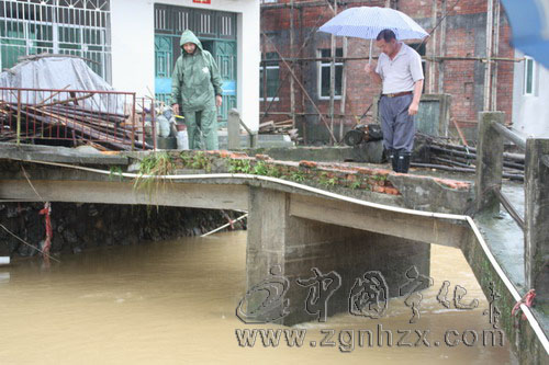各種木頭、豬欄牛欄架、雜物借著洪水威勢,很快堵在了拱橋上,且堵塞物越來越多。橋危險!張恩壽想也沒想,在一座被稱為“拱橋”的橋上,他攀過欄桿下到離洪水只有10來厘米的橋墩上,用四齒耙一根一根頂開漂下來的木頭。“張書記,危險啊。”周圍的村民都替他捏了把汗。