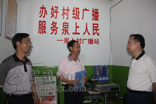 在泉上村聽取村廣播站運行情況