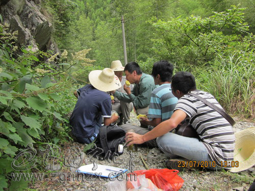 普查隊(duì)員在治平畬族鄉(xiāng)高峰村的山上用午餐