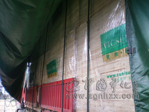 裝在閩G07771號(hào)掛車(chē)車(chē)廂的杉木拼板