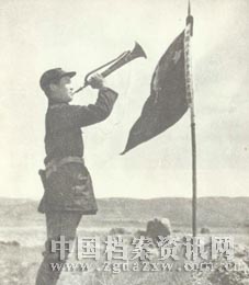 美國著名記者埃德加·斯諾1938年編著的《西行漫記》出版,封面上那位紅軍司號員正迎著朝陽昂頭挺胸地在吹著雄壯軍號的英姿照片,成為紅軍時期廣為流傳的經典圖片。司號員,無論在土地革命戰爭、抗日戰爭,還是在解放戰爭和抗美援朝戰爭中,作為指揮員的喉舌,在戰場上吹響的嘹亮軍號聲,總是鼓舞著指戰員在獵獵軍旗的引領下勇往直前,沖鋒陷陣。