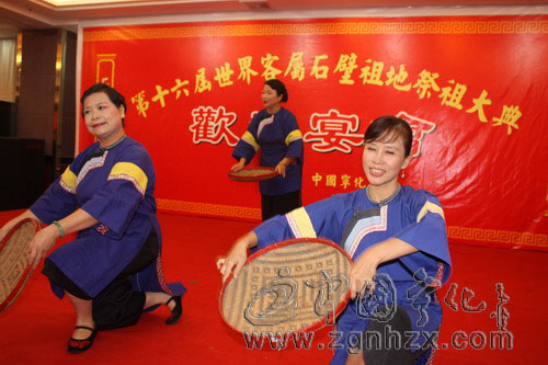 晚宴上,臺灣著名的藍衫樂舞團的藝術家們和寧化客家藝術團聯袂為嘉賓們獻上了一臺精彩的文藝演出。演出在歡快的少兒舞蹈《編花籃》中拉開序幕。臺灣藍衫樂舞團帶來了《農村即景農家情》、《天涯游子思鄉情》、《中秋佳節倍思親》、《孔雀開屏喜洋洋》等節目,載歌載舞的表演,讓人們在領略傳統客家民俗文化的同時,獲得了一次既精美、又新穎別致的藝術享受;寧化客家藝術團深情演唱了由寧化縣委宣傳部參與拍攝的連續劇《滾滾血脈》主題曲《石壁,我的家園》,用飽含滄桑的旋律唱出了客家人的艱辛;獲得三明市首屆山歌大賽一等獎的寧化原創山歌《鄉里間》,高亢抑揚、委婉多腔,唱出了客家人濃濃的深情。