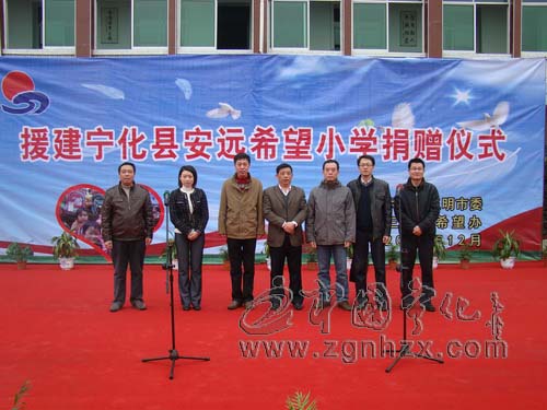 ???? 12月24日,援建安遠后溪希望小學捐贈儀式在寧化安遠中心學校舉行。三明團市委捐贈50萬元,用于在安遠后溪援建一所希望小學。省希望工程領導小組辦公室副主任張志輝,寧化縣委常委、宣傳部長廖金輝,三明團市委相關負責人出席捐贈儀式。