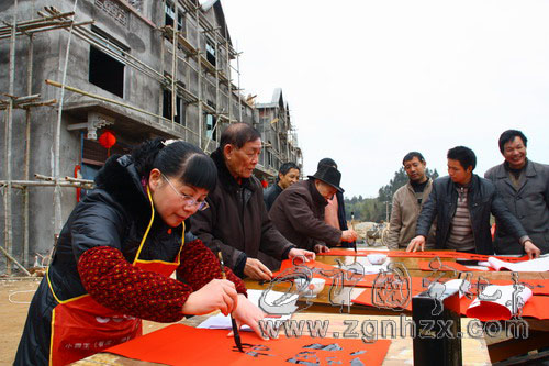 寧化書法家在大畢坑災后住房集中重建點為群眾現場揮毫寫春聯
