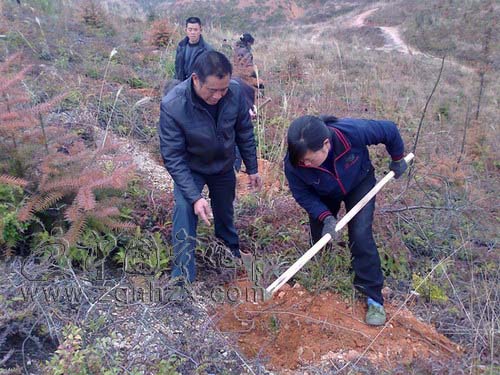 寧化縣林業技術員曾紹尾在指導工人造林