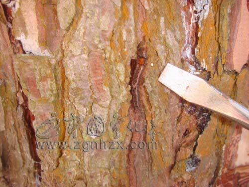 躲在松樹皮下越冬的馬尾松毛蟲