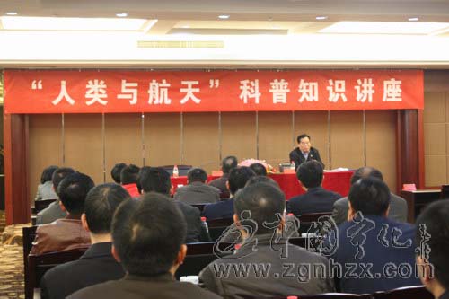 講座中,黃春平研究員從“發展航天事業是人類社會歷史發展的必然”、“自主創新鑄就輝煌”、“發展航天任重道遠”三個方面入手,將高深的理論與具體實踐相結合,用通俗易懂的語言,傳授了航天領域高科技知識,引領大家暢游在航天知識的海洋中,為大家上了一堂生動形象的高尖端航天科普知識課。在講座上,黃春平研究員詳細介紹了我國航天事業艱難發展歷史及載人航天“三步走”的計劃,展示了我國航天科技工作者排除萬難,不斷開拓進取,始終向新的目標邁進的精神。黃春平研究員的講座風趣幽默、精彩紛呈,深深打動了聽眾的心,贏得了臺下一陣又一陣的熱烈掌聲。