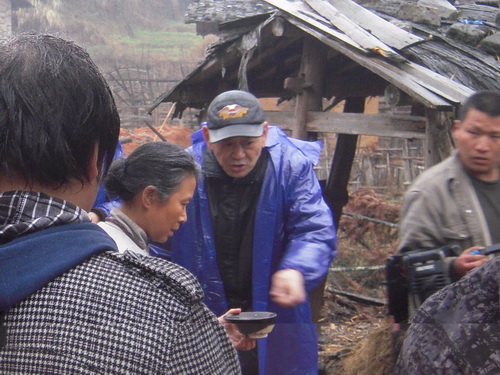 ???? 3月11日下午,細雨濛濛,《我的軍號》劇組總導演韋廉來到拍攝地之一----寧化縣城南鄉上坪村,冒雨指導該片最重要的幾個場景的拍攝。