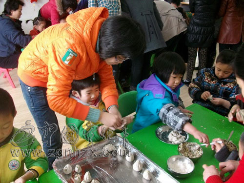 ??? 活動前,老師們精心準備好原材料,通過幻燈片的形式讓孩子了解、再補充介紹皮和餡的制作,最后示范了小吃包制過程。有的奶奶還自主動幫忙,邊示范做燒賣的過程,邊詳細講解注意事項,老師們也受益匪淺。關鍵的制作階段開始了,孩子們一邊捏一邊轉,小手開始靈活的飛舞起來,媽媽奶奶們也隨著忙活和悉心指導。寶寶手法雖顯笨拙,但媽媽、奶奶們都報以會心微笑,直夸寶寶能干。