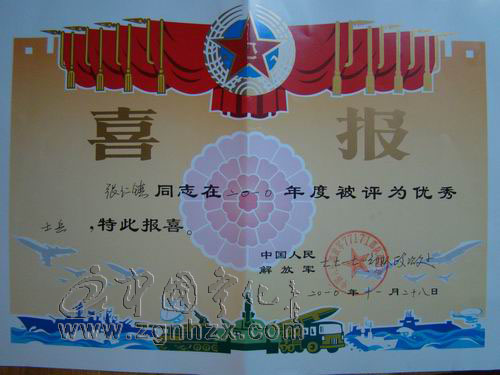 小張在部隊很上進。白天訓練之后,戰友早已進入夢鄉,他卻抱著書苦讀。別人休息時,他仍在訓練場苦練。很快,他的專業技能就位于班組前列。退役前一個月,張仁鎮參加解放軍“使命行動”演習,出色完成部隊交給他的偵察任務。2010年11月,張仁鎮被班里評為“優秀士兵”。
