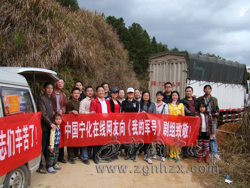 《我的軍號》取材于真實事件,講述紅軍戰士羅廣茂從寧化參加紅軍,成為一名司號員,在殘酷的斗爭中經歷種種磨煉,始終保持著對革命、對司號員職責的忠誠,視軍號、軍號譜為生命,并通過兩代人的努力,把軍號譜和一個號嘴保存下來的故事。該片的拍攝真實再現了寧化人民光輝悲壯的革命歷史,極大激發了寧化人民愛鄉熱情。為表示寧化群眾對劇組的感謝,20日上午,中國寧化在線社區論壇發起了“我們也來支前”網友活動,得到廣大網友的支持,紛紛解囊,捐出50-200元不等,很快籌集了20箱“康師傅”桶面和20箱“農夫山泉”等慰問物資,下午2時,近20名網友結伴開車將慰問品送到了拍攝外景地。
