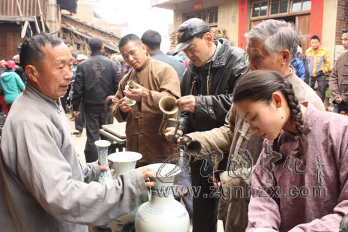 ??? 26日,在泉上鎮泉上村老街上,將拍攝《我的軍號》中年劉廣順在集市上尋找丟失的軍號的一場戲,在演員導演和執行導演的指導下,“大文”、“拉?!?、“一點丫頭米果”、“雨微”、“麥子”、“我左手打方向”、“青云劍士”等16位網友很快適應了拍攝氛圍,扮成趕集的路人和小商販,按導演的要求走戲、拍攝,經過演練、帶機走位、試拍、實拍,最后,韋廉導演一句話:“這鏡頭過了!群眾演員不錯,很好!王導!你表揚他們一下!”,得到著名導演的首肯,網友們都很開心。