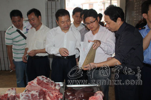 ???? 4月29日上午,寧化縣委副書記、常務(wù)副縣長、縣食安委主任楊永生帶領(lǐng)縣食安辦、工商局、農(nóng)業(yè)局、畜牧水產(chǎn)局、質(zhì)監(jiān)局、經(jīng)貿(mào)局、衛(wèi)生局等單位相關(guān)人員組成聯(lián)合執(zhí)法檢查組,在城區(qū)開展食品安全檢查。