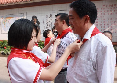 在寧師附小,縣長巫福生,縣委常委、宣傳部長一行在戴上了學生們敬獻的紅領巾后,參觀寧師附小的校園,察看并聽取了學校圖書館的藏書、新校門設計和學校師資力量配比情況。巫福生指出,當前,城區四所小學都存在學校拓展空間受限的問題,最好的解決辦法就是,通過辦分校的模式將寧化優質學校優秀的管理體制、優良的教育方法輻射到新建學校去,保證優質學校的輻射帶動作用。學校學生安全重這又重,對于附小新校門設計則要兼顧實用與安全,客家賓館項目單位、縣城建局等部門要充分考慮,與寧師附小共同協商,拿出可行方案,保證新校門改建成功。