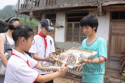 寧化特校學(xué)生代表向“大彬”贈(zèng)送十字繡,祝他早日康復(fù)