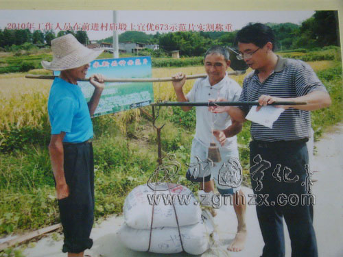 ???? “只有業(yè)務(wù)精通,才能工作過硬”,是曾仁杰的行為準(zhǔn)則。為了探索河龍貢米新品種的抗逆性、適應(yīng)性和產(chǎn)量表現(xiàn),為河龍貢米新品種在全縣大面積推廣提供大田實驗依據(jù), 2009年該鄉(xiāng)展示宜優(yōu)673、宜優(yōu)115等26個新品種,2010年展示NT1、NT2等25個新品種。曾仁杰非常重視這項展示工作,“為了詳細(xì)記載水稻莖蘗數(shù)動態(tài)情況,每隔3天我都要早上4點多起床去田間,一蹲就是3、4個小時。”水稻品種展示是一種系統(tǒng)、復(fù)雜、連貫性強,工作量大而且持續(xù)時間長(120—160天左右)的試驗,特別是水稻莖蘗數(shù)動態(tài)記載,從水稻移栽直至最高莖蘗數(shù)止(一般為30左右天)。曾仁杰告訴記者,工作量更大的是水稻理論產(chǎn)量測定室內(nèi)考種數(shù)穗粒,一個樣品要花上8、9個小時。“我是農(nóng)民的兒子,學(xué)的又是農(nóng)學(xué),為了河龍貢米,我再苦再累都值。”