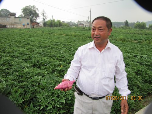 當時地瓜只有3-4毛一斤,扣除苗種成本和肥料錢,一畝大約可收入2000元,這與水稻相比,收入還多了幾百元,這讓他嘗到了種植地瓜的甜頭。第二年,他就帶領(lǐng)龍頭村民跟他一起種植,村民不懂得管理的都找他幫忙,向他學技術(shù),漸漸地他就成了村民心中的“地瓜王”。
