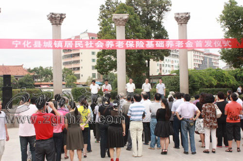 ???? 9月29日上午,寧化縣人民政府在翠園廣場隆重舉行城鎮居民社會養老保險基礎養老金首發儀式,40余名年滿60周歲以上的城鎮非從業居民代表領取了第一筆養老金,據了解,寧化是全市首個全面發放城市居民社會養老保險金的縣份,此次首批可領取社會養老金的城市非從業居民人數達2307人。