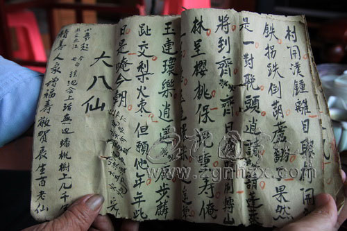 “嗩吶王”向記者翻開他珍藏60多年的嗩吶曲牌。