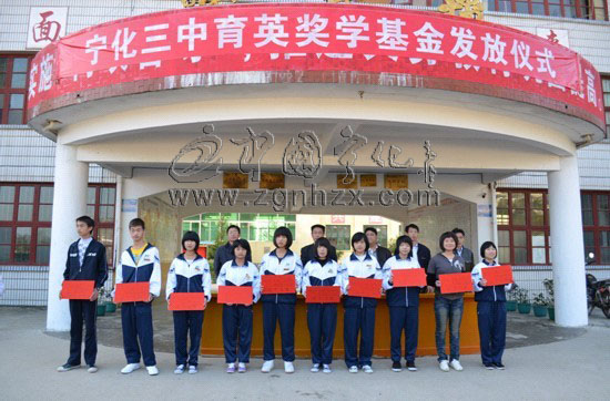 11月28日,寧化三中舉行“育英獎學金”頒獎典禮。本次榮獲“育英獎學金”的是該校今年中考正取一中的前10名同學,他們是曹冬財、夏嘉麗、曹九金等,每人獲得獎學金2000元,合計2萬元。
