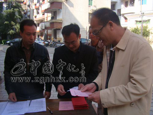 ??? 上午10時許,縣委書記肖長根來到翠江鎮紅衛村投票點,在仔細聽取紅衛村工作人員有關選舉事項的說明后,他領取了選票,并在寫票處認真填寫。隨后,他走到紅色的票箱前,投下了作為一名普通選民莊嚴的一票。